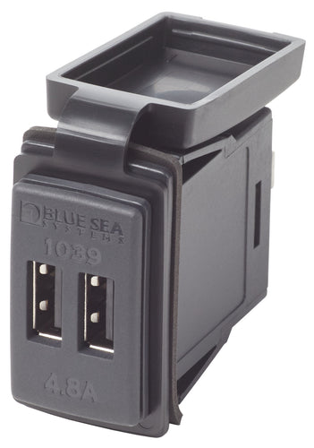 Blue Sea Dual USB 4.8A Charger Port 12/24vDC Socket Mount