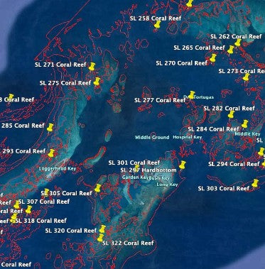 The South Florida and Keys Reefs fishing chart contains 421 GPS waypoints, from north of West Palm Beach down to Key West and the Dry Tortugas. The coverage includes over 100 GPS waypoints from West Palm Beach to Miami, and well over 300 potential fishing spots from south of Miami down to the Florida Keys, extending to include Dry Tortugas. The waypoints include hard bottom patches, coral reefs, coral heads, limestone reefs, and other features. No matter where you fish along South Florida’s coastal waters this waypoints chart provides plenty of options to choose from.