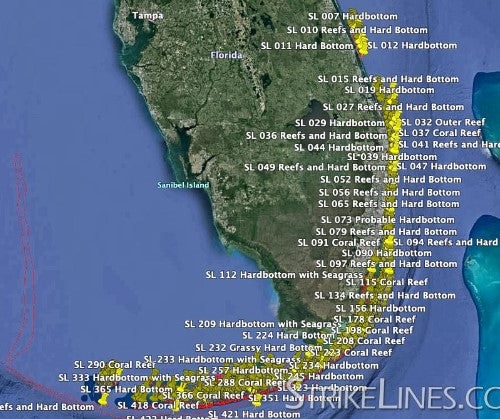 For Simrad, Lowrance, mobile device, and computer, the chart also contains tens of thousands of lines used to trace coral heads, reefs, hard bottom areas, and more. The lines will not display on a Garmin, Raymarine, or Humminbird.