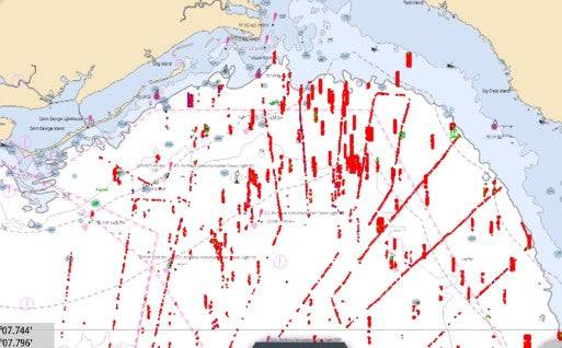 The Garmin version includes 3,819 waypoints (versus 45,000+ for the Lowrance/Simrad versions) and it  does not include the outlines/polygons that trace the reef structure. If you have a Garmin and want the full chart, talk to us about a portable Lowrance or Simrad.