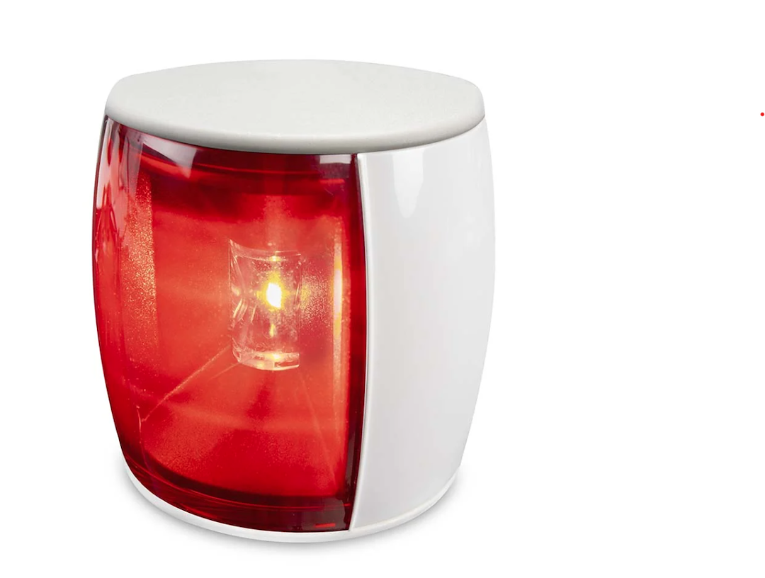 Port Light; 3.43 Inch Width x 2-1/4 Inch Depth x 3.54 Inch Height; Less Than 2 Watt Power Consumption; 3 Nautical Miles Visible Distance; 9 To 33 Volt Operating Voltage For 12/24 Volt Applications; IP67 Protection; LED Bulb; Red Lens; Acrylic Lens; White Housing; Plastic Housing; IMO Col Reg 72/ USCG/ ABYC C-5/ RCM/ Maritime NZ Compliance/ CE Certified; With 2.5 Meter Twin Core Marine Cable