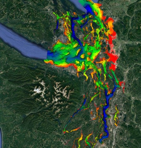 Puget Sound fishing map 3D with high resolution images of the seafloor.