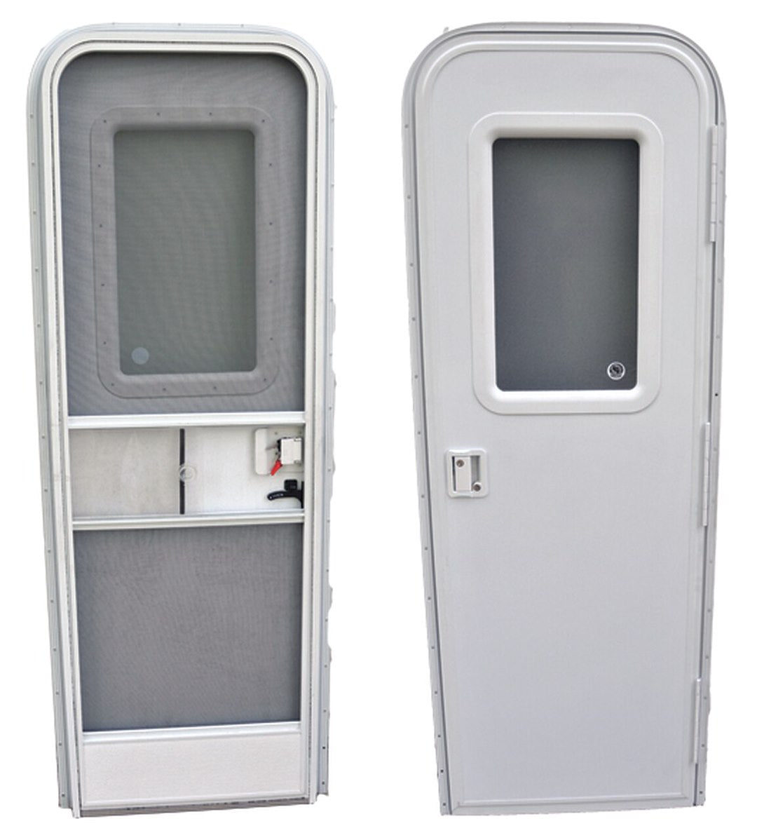 Square Door; 26 Inch Width x 78 Inch Height; Right Side Hinges; Polar White With Pebble Interior And Smooth Exterior; 12 Inch x 21 Inch Window With Obscure Glass And White Frame; With White Extrusion