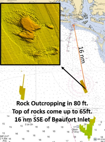 The data from frying pan towards cape lookout consist of numerous small areas containing wrecks, ledges, and random small natural bottom features that tend to hold some of the largest concentrations of fish. These spots are traditionally missed due their size.
