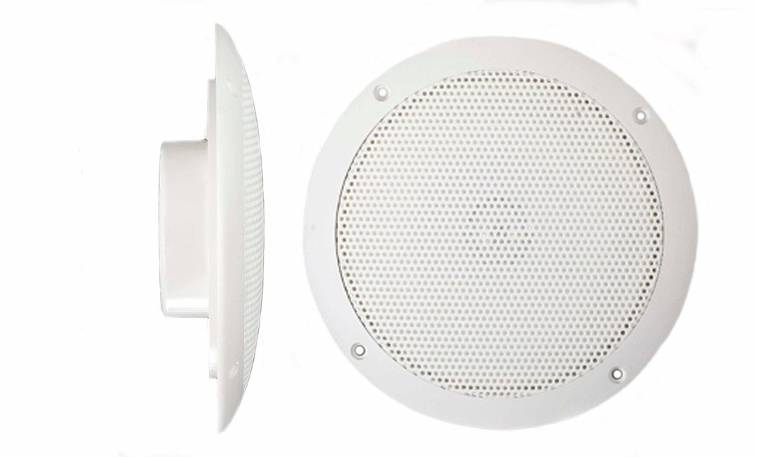 5 Inch Full Range Speaker; 15 Watt RMS/ 30 Watt Maximum; 4 Ohm; Frequency Response: 90 Hertz Through 20 Kilohertz; Ultra-Slim; Mounting Depth: 1 Inch; Overall Diameter: 6 Inch; IP65 Waterproof; UV Resistant; White; Lightweight; REACH/ CE/ RoHS Compliant; Set Of 2