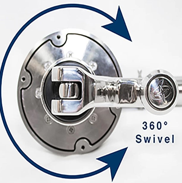 Our patented one-handle operation allows for complete adjustment of your outriggers from underneath the T-top. Up, down, in, and out, making them much safer to use during rough offshore conditions. Stainless steel roller bearings make these the smoothest operating and most user-friendly bases on the market. The short-handled outrigger bases were designed to help accommodate retrofit applications where the standard handle length interferes with pipework on your T-Top. The same function as the GEMLUX outrigger base, but with a shorter handle.